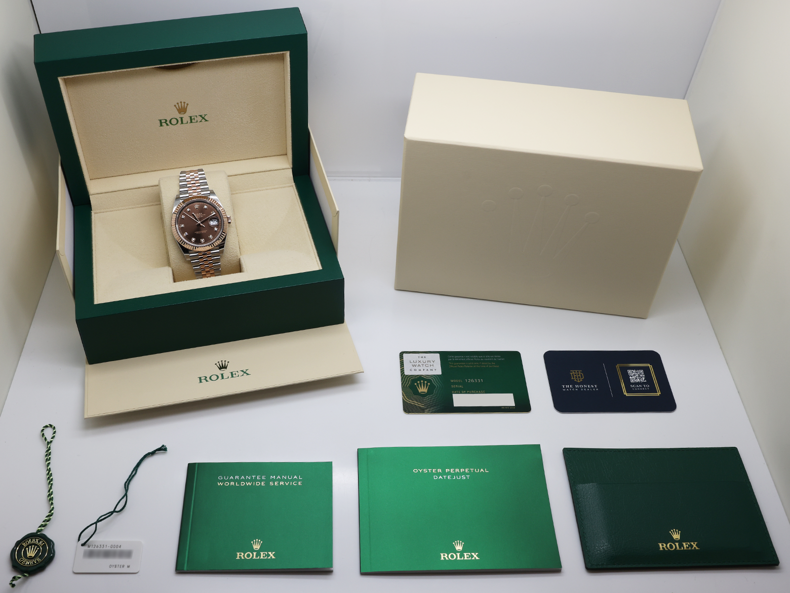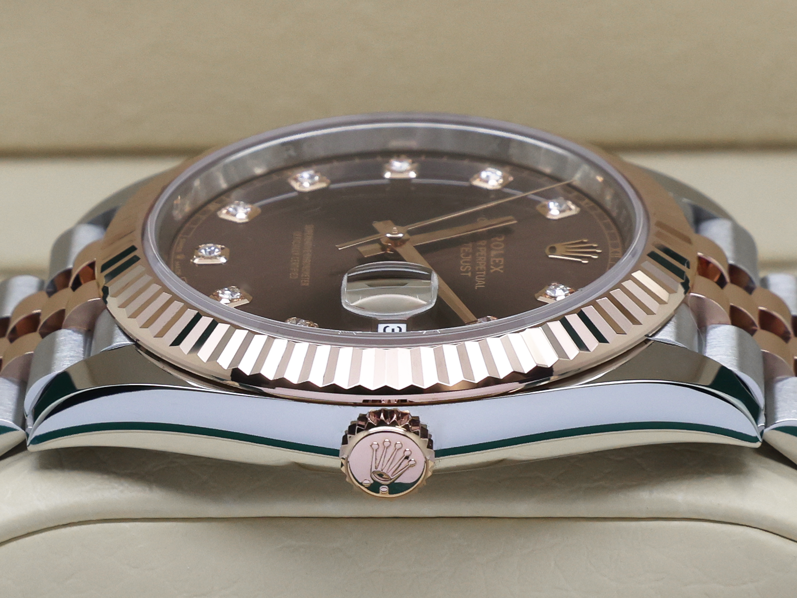 GENTS ROLEX DATEJUST 41mm 126331 18ct ROSE GOLD/STEEL CHOCOLATE DIAMOND DOT DIAL WARRANTY 2022 UK B&P