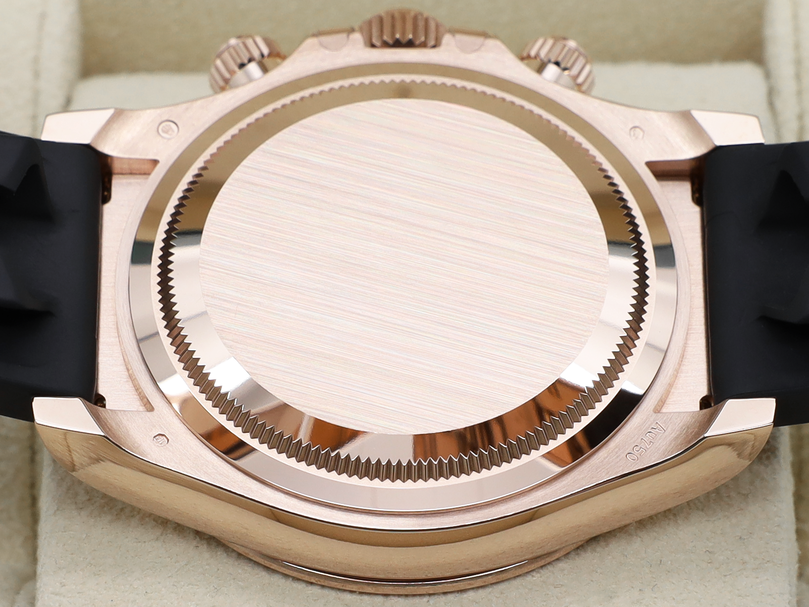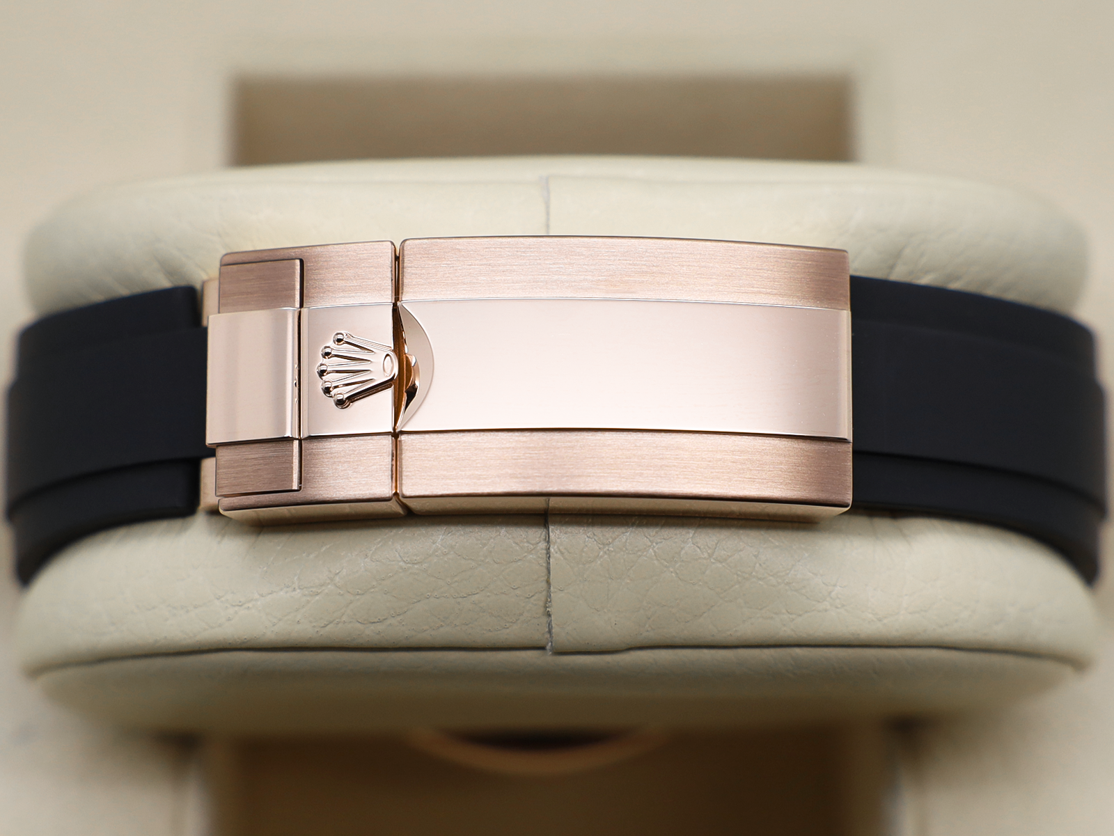 Strap Material Black Oysterflex Rubber with 18ct Rose Gold Safety Clasp