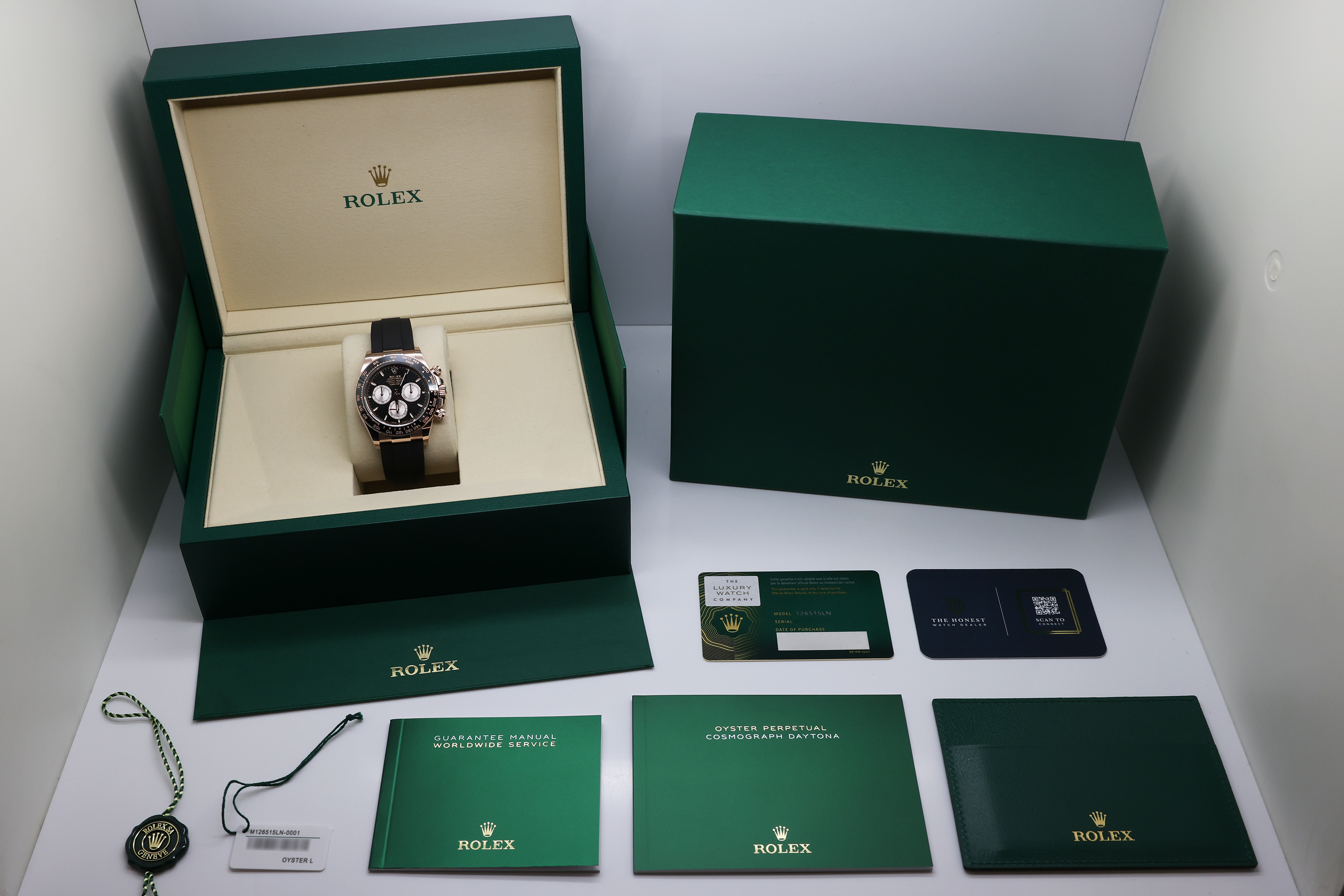 GENTS ROLEX DAYTONA 18ct ROSE GOLD OYSTERFLEX 126515LN BLACK DIAL NEW MODEL WARRANTY 2025 UK B&P
