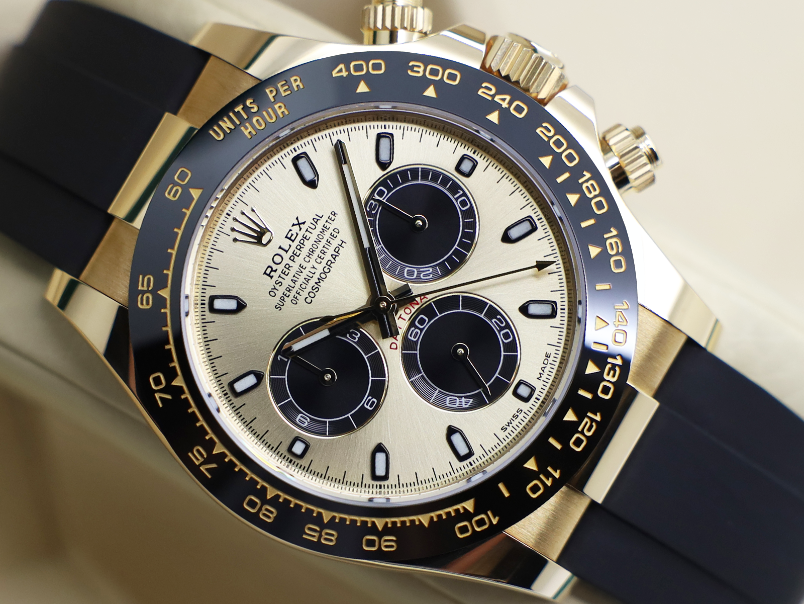 Black Oysterflex Rubber with 18ct Yellow Gold Safety Clasp