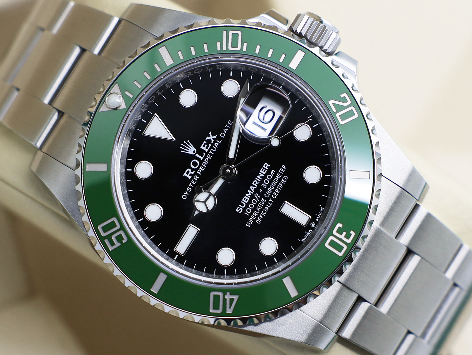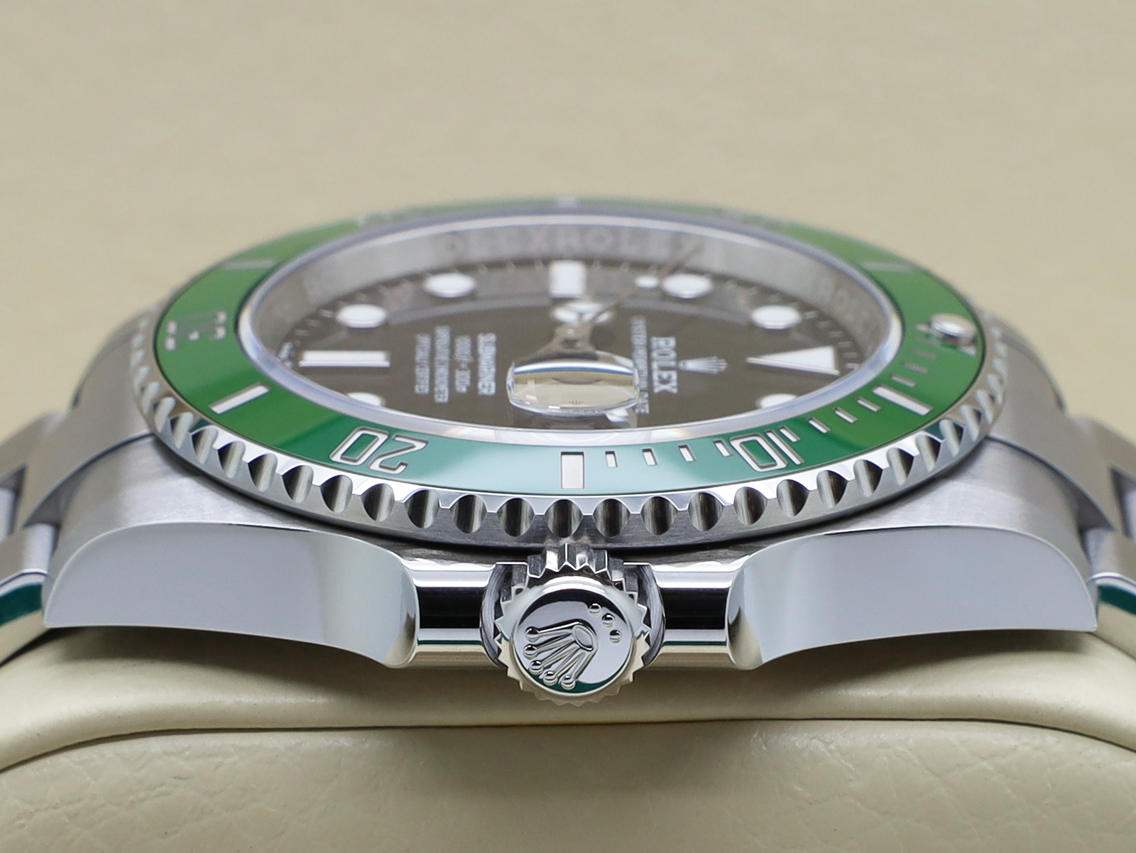 Stainless Steel Rotating Bezel Set with a Green Ceramic Insert with Numerals