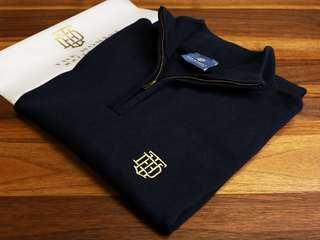 THE HONEST WATCH DEALER COTTON 1/4 ZIP JUMPER IN NAVY BLUE
