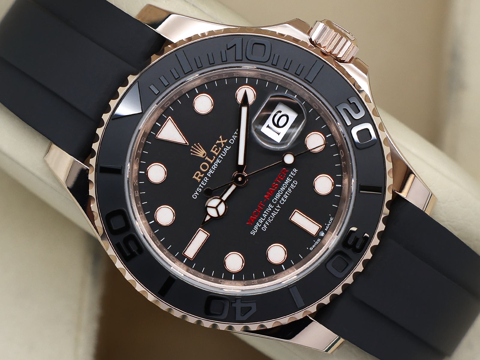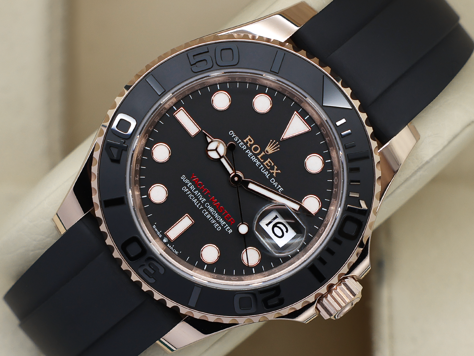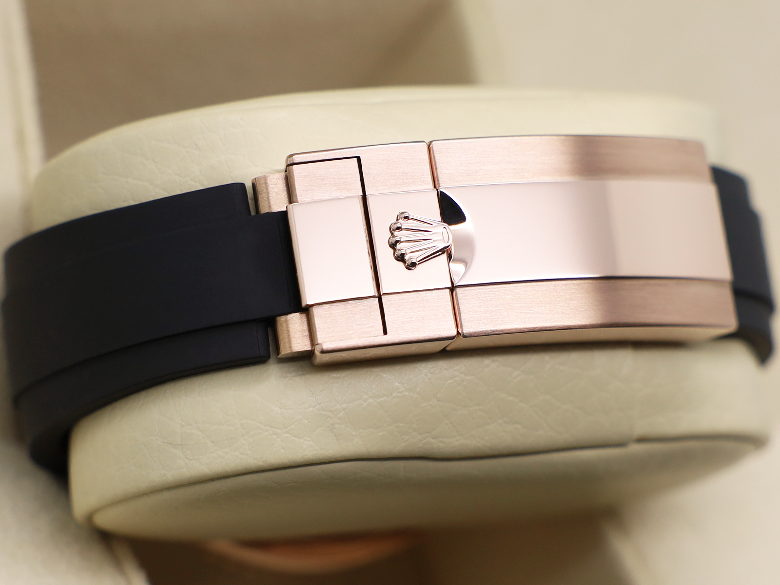 Black Oysterflex Rubber with 18ct Rose Gold Safety Clasp
