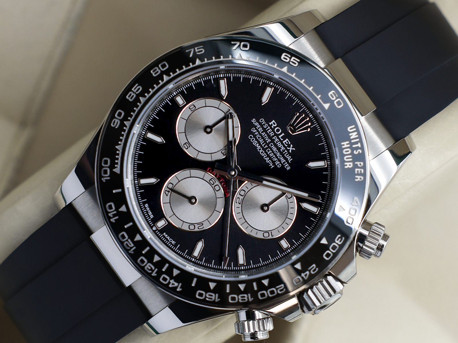Black Oysterflex Rubber with 18ct White Gold Safety Clasp