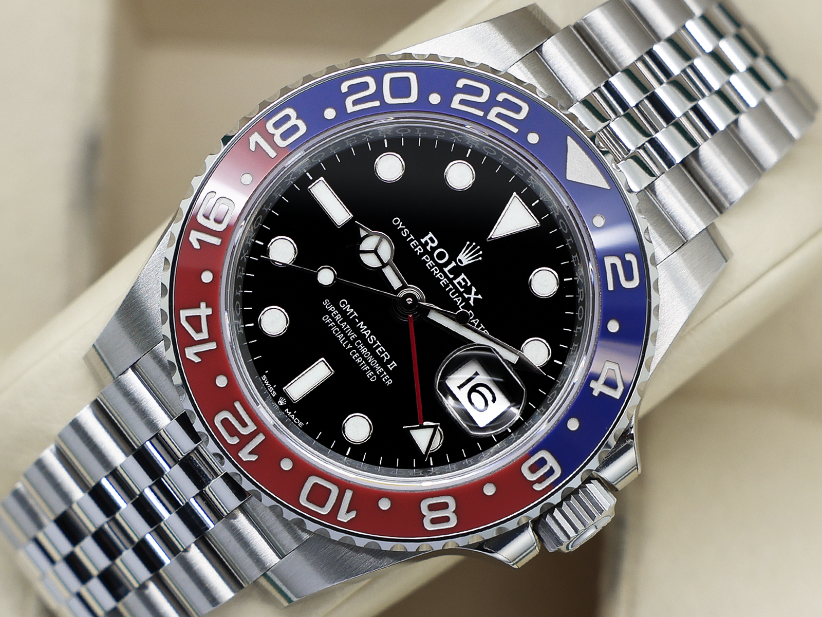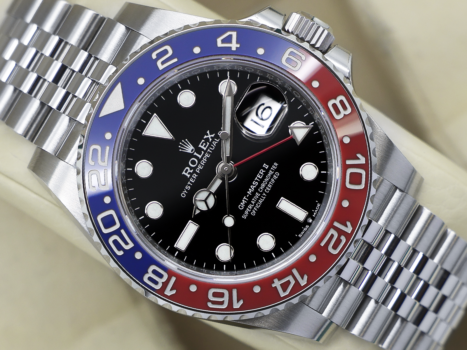 Stainless Steel Rotating Bezel with Blue and Red Ceramic Insert