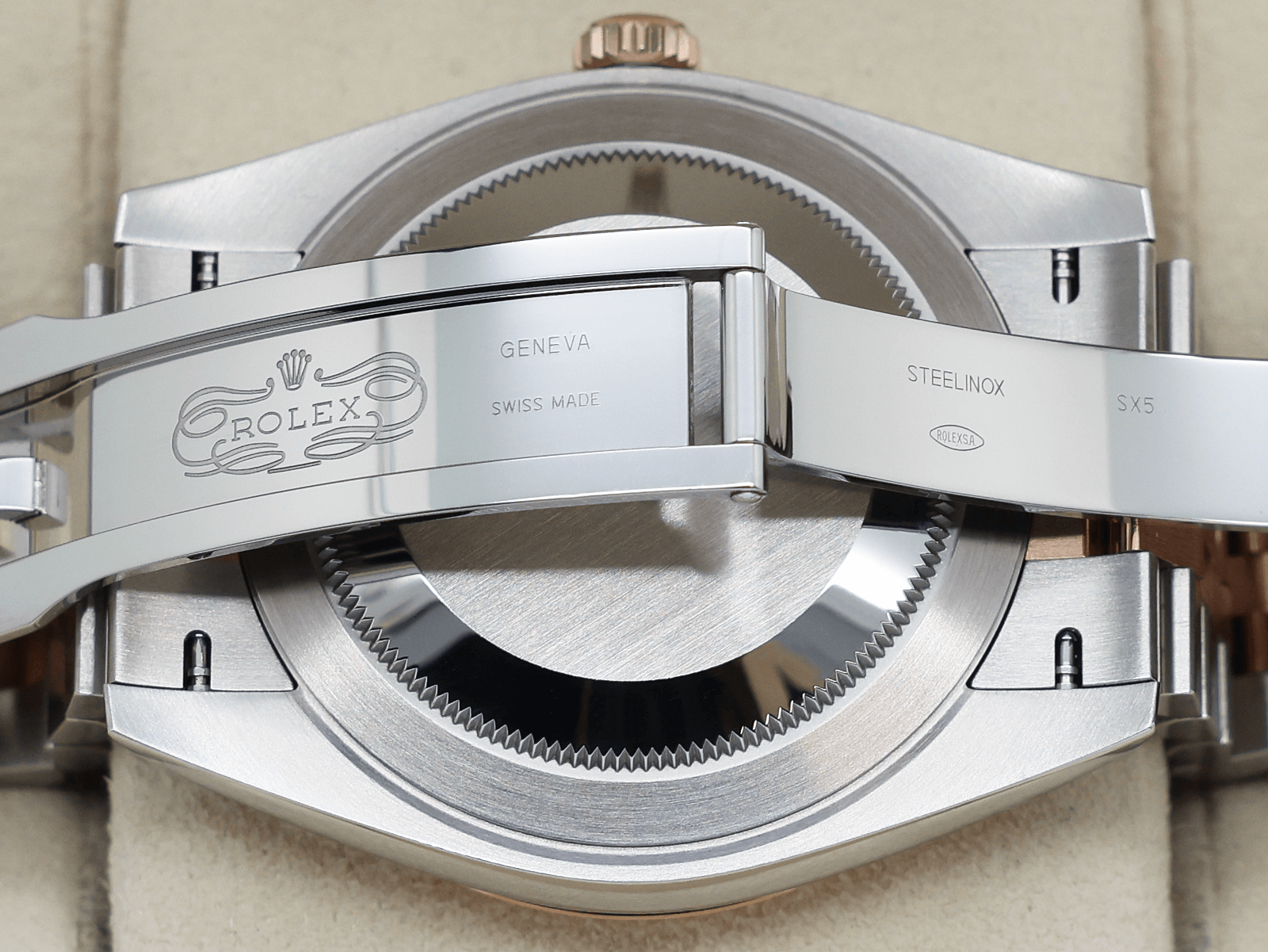 The Rolex 18ct Rose Gold and Stainless Steel Oyster Bracelet has a Full Retail Length and is Fitted with The Folding Safety Clasp and Extension Link.
