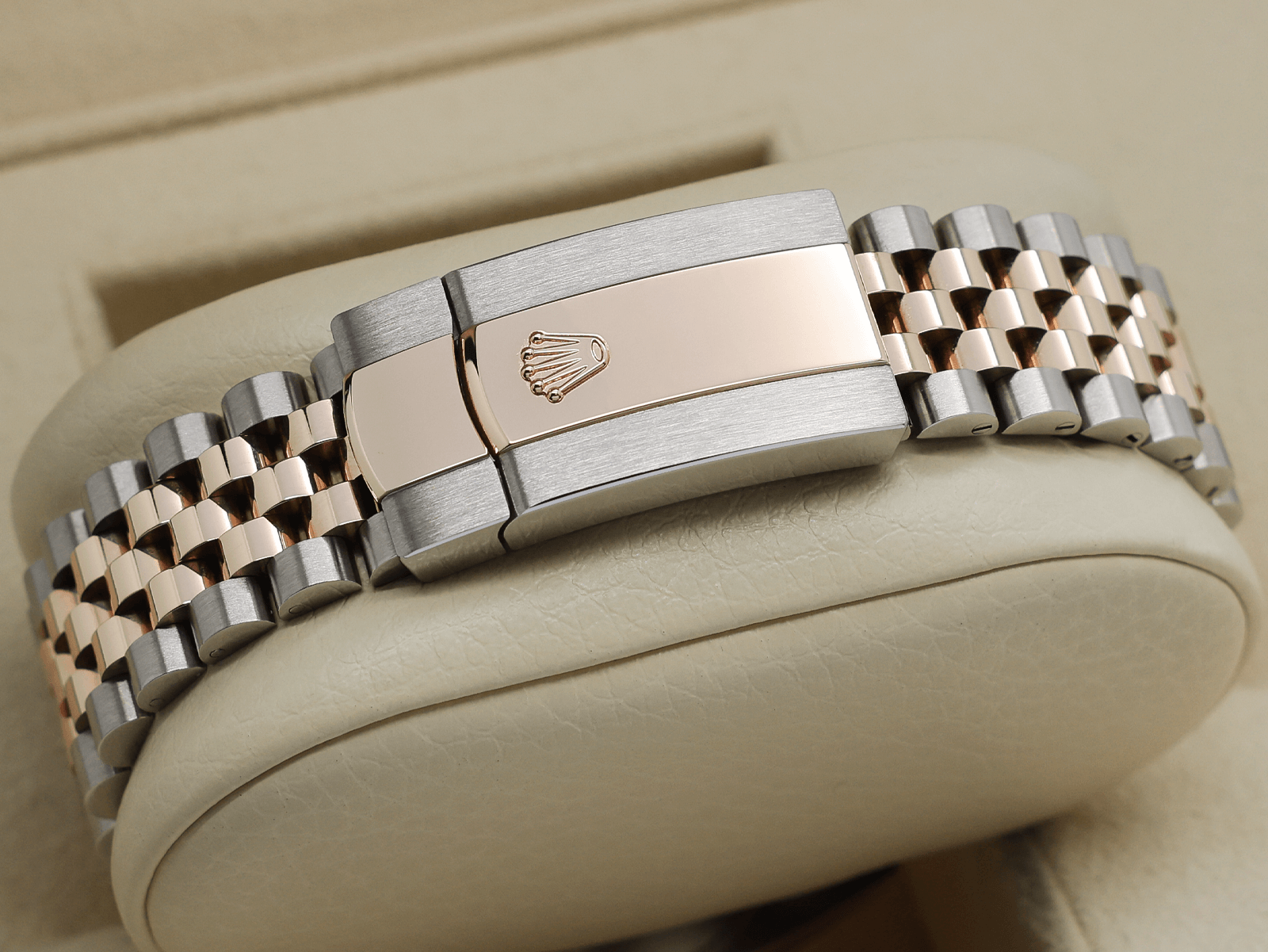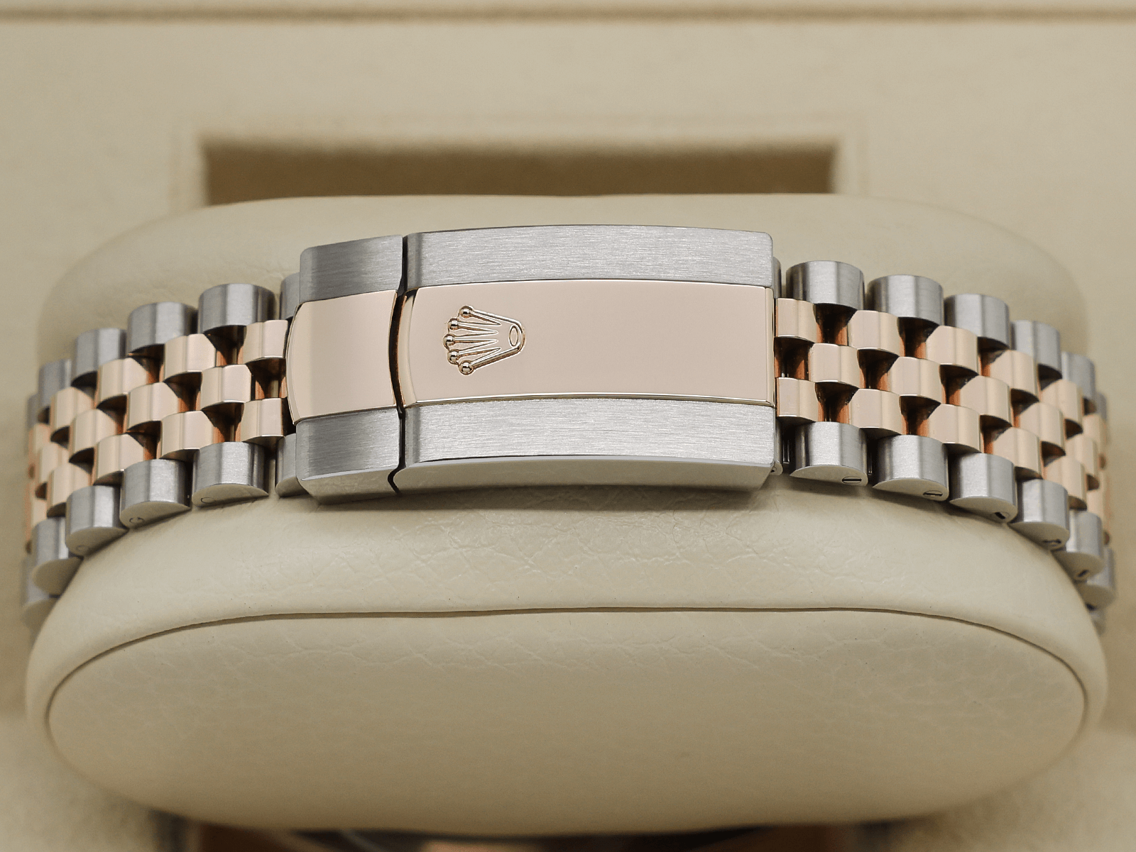 The Rolex 18ct Rose Gold and Stainless Steel Oyster Bracelet has a Full Retail Length and is Fitted with The Folding Safety Clasp and Extension Link.
