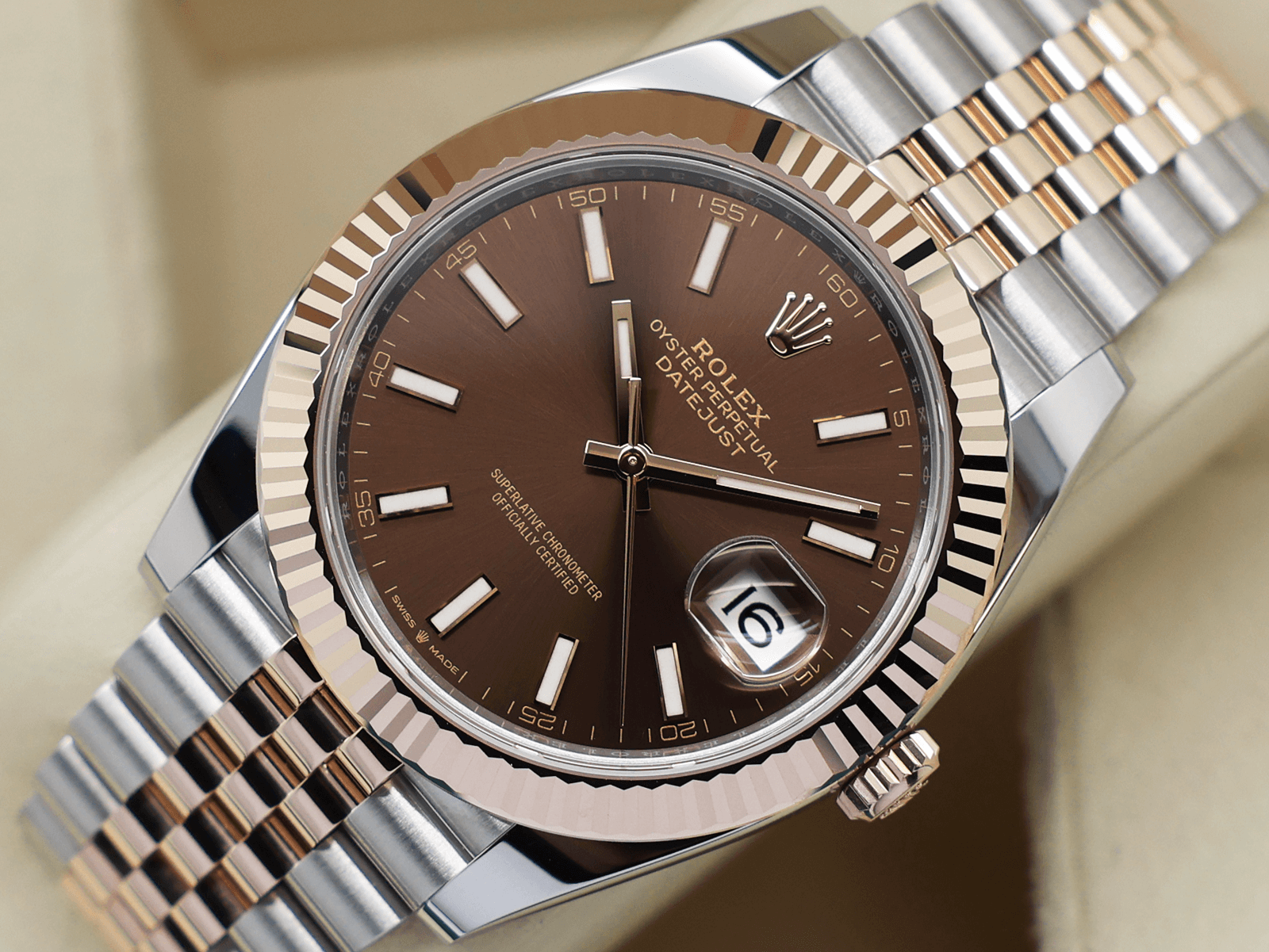 GENTS ROLEX DATEJUST 41mm 126331 18ct ROSE GOLD/STEEL CHOCOLATE DIAL WARRANTY 2025 UK B&P