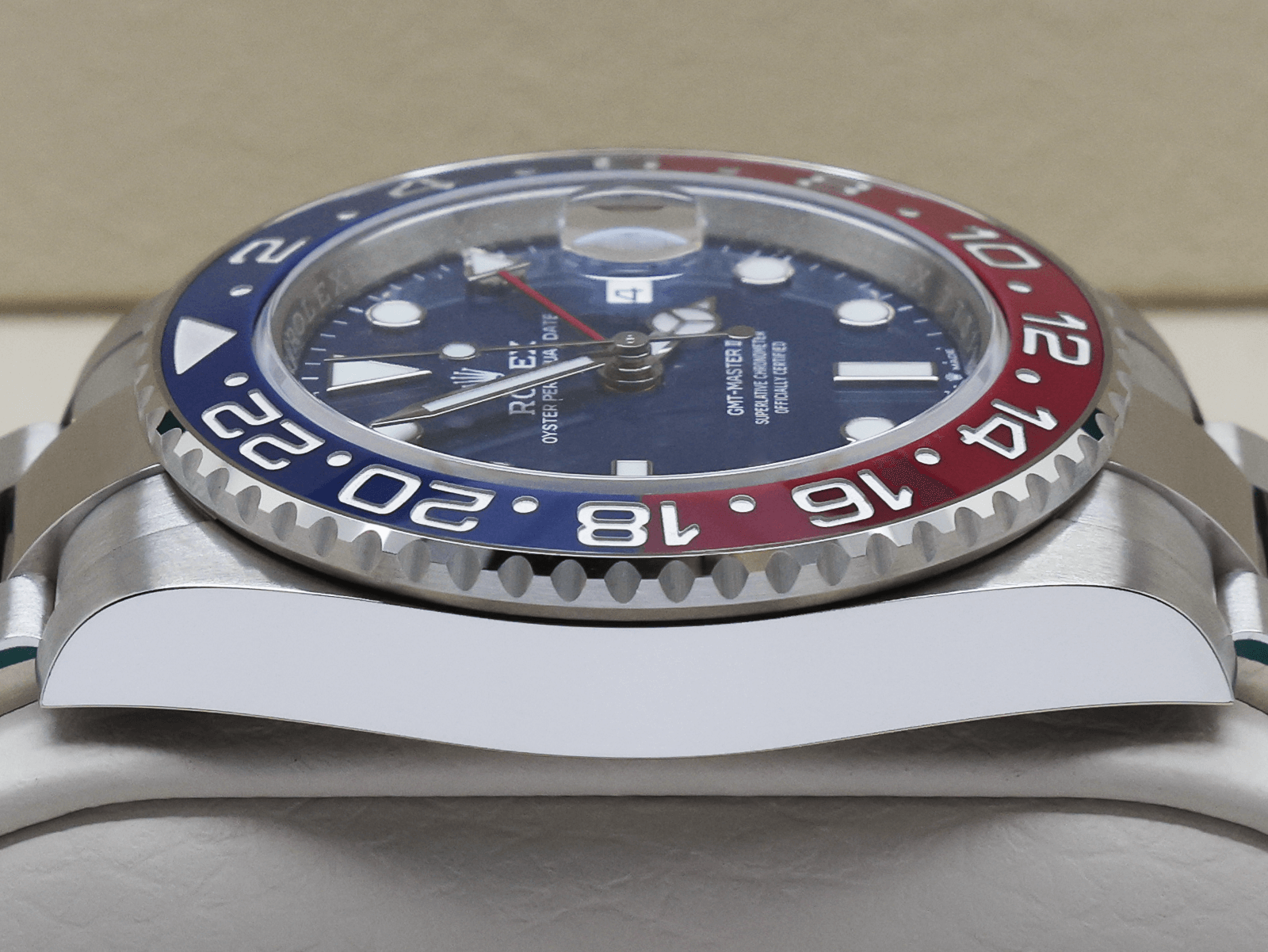 Stunning Gents Rolex GMT-Master II “Pepsi” Watch in 18ct White Gold with a Blue Dial and 18ct White Gold Rotating Bezel with a Blue and Red Ceramic Bezel.