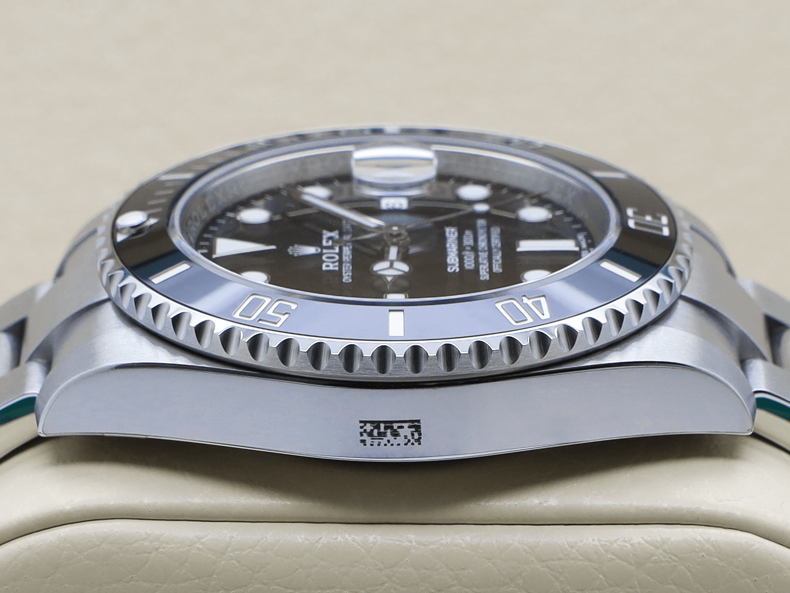 Stunning Gents Rolex Submariner Date 40mm Watch in Stainless Steel with a Black Dial and Stainless Steel Rotating Bezel with a Black Ceramic Insert.