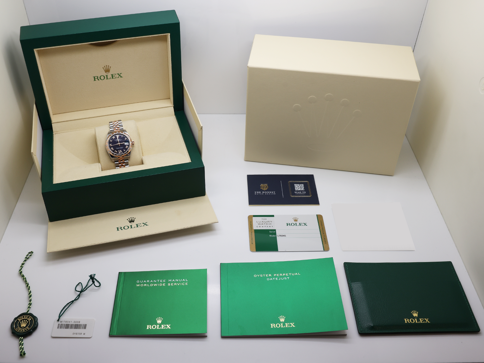 LADIES ROLEX DATEJUST MIDSIZE 31mm 178341 ROSE GOLD/STEEL AUBERGINE DIAMOND DIAL/DIAMOND BEZEL WARRANTY 2018 UK B&P