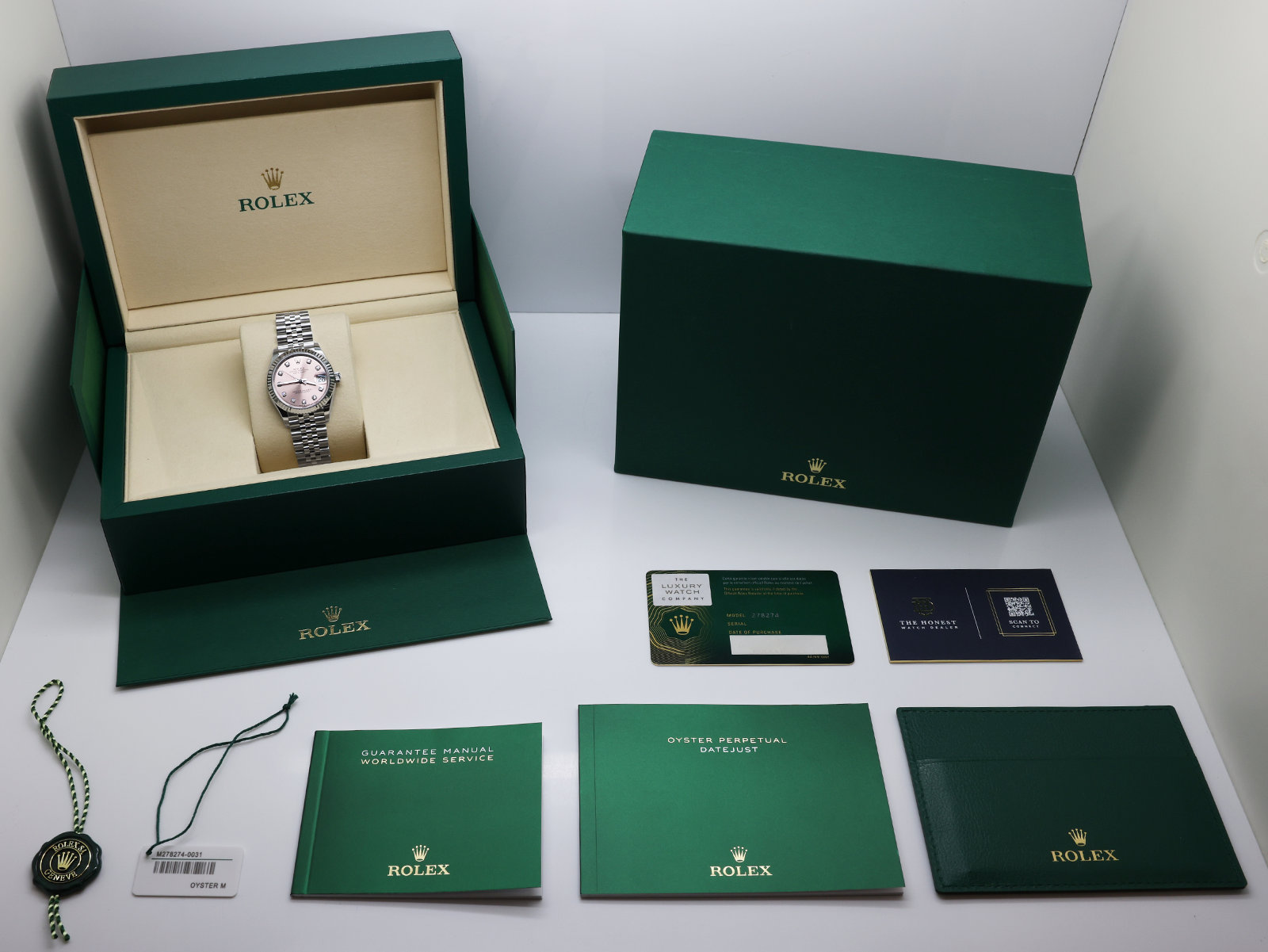 LADIES ROLEX DATEJUST MIDSIZE 31mm 278274 STEEL PINK DIAMOND DOT DIAL UNWORN 2025 UK B&P